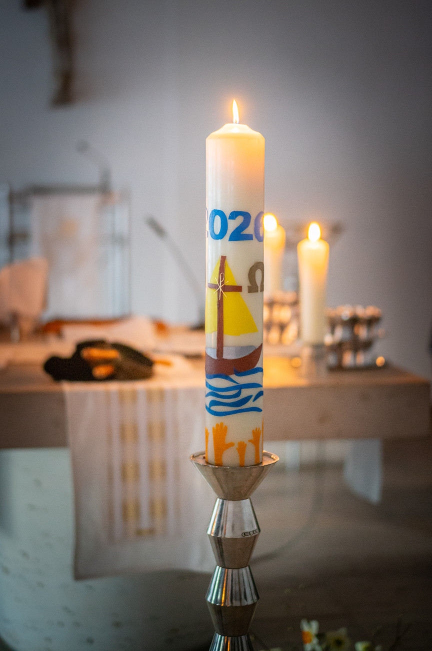 Unsere Osterkerze wurde im Rahmen der Osternacht am Osterfeuer entzündet. Das Licht und die frohe Botschaft wurde mit vielen Kerzen weitergegeben und in die Häuser Hochzolls getragen. Wir danken dem Helferkreis Aufwind für die Gestaltung der schönen Osterkerze, welche uns im Gottesdienst mit ihrem Licht begleiten wird. Der HERR ist auferstanden! Er ist wahrhaftig auferstanden!
